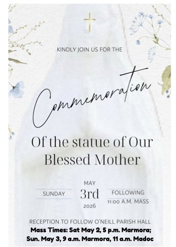 You may drop off your donations or mail them to the Parish mailboxes in Marmora and Madoc.